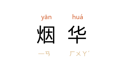 ⒋ 亦作“烟华”。谓光彩闪耀。
