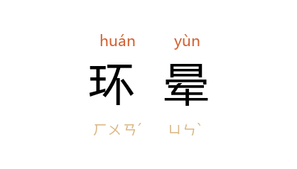 引《新五代史·司天考二》:“五代 之际,日有冠珥,环晕、缨纽、负抱、戴履、背气,十日之中常七八,其繁不可以胜书。”宋 庞元英 《文昌杂录》卷六:“《雌图》者,止説日之环晕,星之彗孛,亦非奇书。”