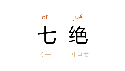 ⒈ “七言绝句”的简称。一种每首四句,每句七个字的格律诗。