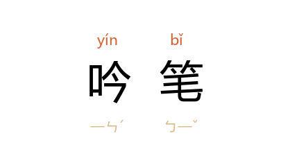 引宋 梅尧臣 《李少傅郑圃佚老亭》诗:“春禽时弄吭,清景付吟笔。”宋 陈与义 《再用迹字韵成一首呈判府》:“尚餘烟月债,驱使入吟笔。”元 赵善庆 《忆王孙·述忆》曲:“吟笔未成 贾谊 策,鬢毛衰。”