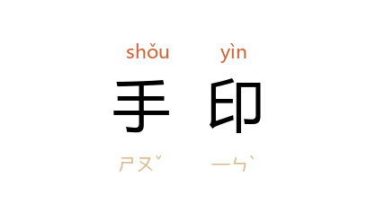 ⒊ 佛教语。密宗修持以“三密相应”为主,“手印”谓配合所修的本尊而作出的各种手形。