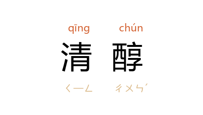 引《后汉书·卷四十九·仲长统传》:「清醇之酎,败而不可饮。」《文选·嵇康·琴赋》:「兰肴兼御,旨酒清醇。」