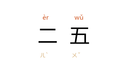⒈ 指别卦中的第二爻与第五爻。指阴阳与五行。两个五,即十。方言。即二百五。犹言傻里傻气。指春秋时晋献公嬖人梁五与东关五。