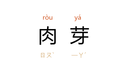 ⒈ 指刚长出的新肉。按,动物从溃疡或伤口的底部和边缘长出的一种新生组织,用以填补缺损部分者,称肉芽组织。因其表面呈颗粒状,色鲜红,状似新生幼芽,故名。