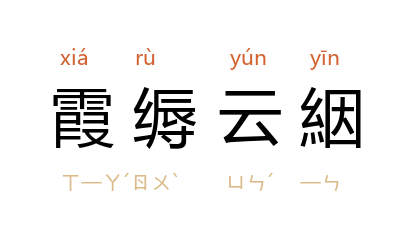 引清 黄遵宪 《中秋夜月》诗:“曾闻 太姆 会羣仙,霞縟云絪敞綺筵。”钱仲联 笺注引 祝穆 《方舆胜览》:“北壁西厦,设一宝牀,谓之 太姥魏真人 座;北壁东间,设一宝座,谓之 武夷君 座,悉施红云裀,紫霞縟。”