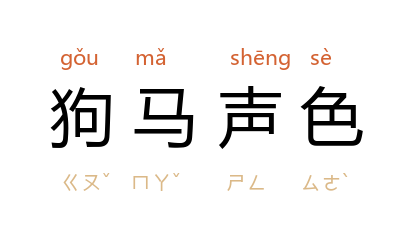 ⒈ 比喻喜好声色等享乐、不务正业的行为。也作「声色狗马@@@声色犬马」。