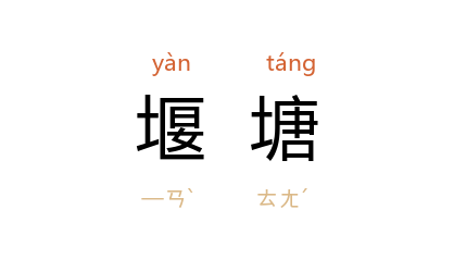 引明 徐弘祖 《徐霞客游记·粤西游日记二》:“渡桥,又二里,堰塘愈大,石峰至此东尽。”臧克家 《叮咛》诗:“我们一早一晚,到堰塘里去打水,肩头上,扁担吱吱地叫,水桶里,水哗哗地笑。”