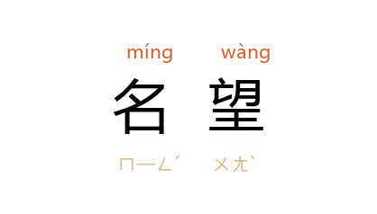 ⒈ 名声,威望;为人仰望的名声。指有名望的人。名门望族。