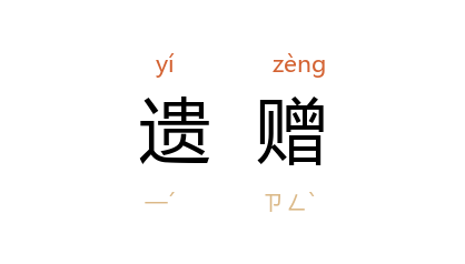 ⒈ 法律上指依据遗嘱将其财产的一部分或全部,于死亡后赠与特定的人,称为「遗赠」。