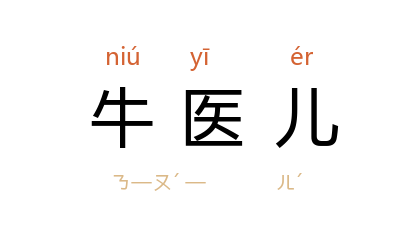 ⒈ 牛医之子。喻出身微贱而有声望的人。典出《后汉书·黄宪传》:“世贫贱,父为牛医……同郡戴良才高倨慠,而见宪未尝不正容,及归,罔然若有失也。其母问曰:'汝复从牛医儿来邪?'”
