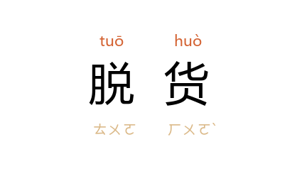 引《警世通言·吕大郎还金完骨肉》:“拉他同往 山西 脱货,就带羢货转来发卖。”明 单本 《蕉帕记·造逆》:“大 宋 山河,将他脱货,换个君王做。”孙锦标 《通俗常言疏证·货财》引《杭州俗语·杂对》:“探囊取物,脱货求财。”