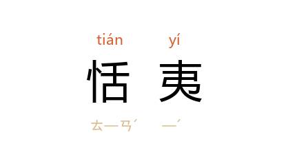 引唐 吴筠 《游仙》诗之十八:“恬夷宇宙泰,焕朗天光彻。”前蜀 杜光庭 《中元众修金箓斋词》:“中外恬夷,生灵辑睦,况属三元令序,大宥昌辰。”宋 曾巩 《赠大理寺丞致仕杜君墓志铭》:“宗诲 为人,质厚恬夷,世俗之所为有不为者。”