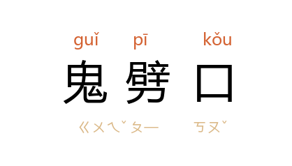 引宋 王明清 《挥麈后录馀话》卷一:“穆父 既出国门, 蔡元度 饯别,因诵其前联,云‘公知 子厚 不可撩拨,何故詆之如是?’ 穆父 愀然曰:‘鬼劈口矣!’”元 杜仁杰 《耍孩儿·喻情》套曲:“我当初不合鬼擘口和你盟誓,惹得你鬼病厌厌掛体。”元 郑廷玉 《金凤钗》第三折:“见一箇粗豪士扯住箇英才,我不合鬼擘口审问的明白。”