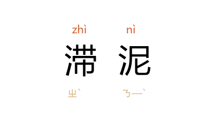 例如:「他做事滞泥,并不适合这个讲求效率的工作。」