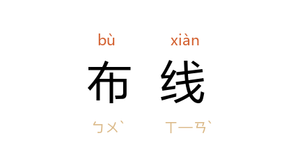 ⒉ 指架构网路时,线路的安排。也作「布线」。