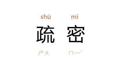 踈密,一本作“疏密”。 南朝 梁简文帝 《答湘东王上王羲之书》:“试笔成文,临池染墨,疏密俱巧,真草皆得。”