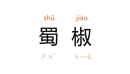 ⒈ 落叶灌木,产于 蜀 中,又称巴椒、川椒。果实光黑,肉厚皮皱,腹里白,气味辛辣,可作香料。