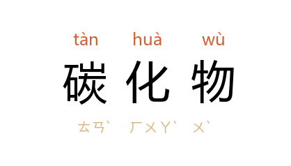 ⒈  碳与其他金属或非金属元素所形成的化合物,通常是经由高温加热而产生。如碳化氢、碳化钙等。
