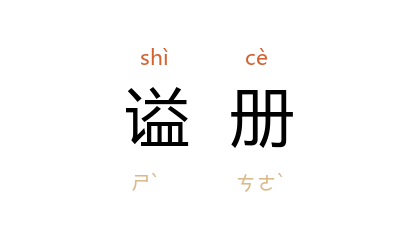 ⒈ 亦作“諡册”。指刻有为帝后上谥诏书的简册。