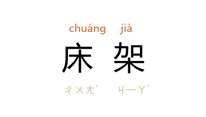 ⒈ 床的框架,通常包括连床脚的搁头的一端,连床脚的搁脚的一端,以及连接的侧边或横杆。