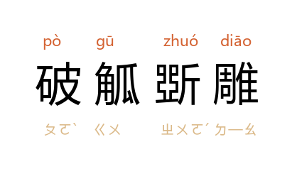 引语出《史记·酷吏列传》:“汉 兴,破觚而为圜,斲雕而为朴。”宋 欧阳修 《贾谊不至公卿论》:“而 文帝 由 代 邸嗣 汉 位,天下初定,人心未集。方且破觚斲雕,衣綈履革,务率敦朴,推行恭俭。”