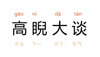 ⒈ 高谈阔论,神态傲兀。语出汉张衡《应间》:“方将师天老而友地典,与之乎高睨而大谈。”