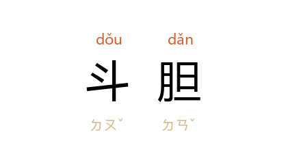 ⒈ 胆大如斗,古人以为胆量大胆囊必大,相传三国时代蜀将姜维即是如此。唐·胡曾〈谢赐钱启〉:「推葛亮之秤心,负姜维之斗胆。」后借斗胆来形容胆量很大。常含有礼貌上的意义。