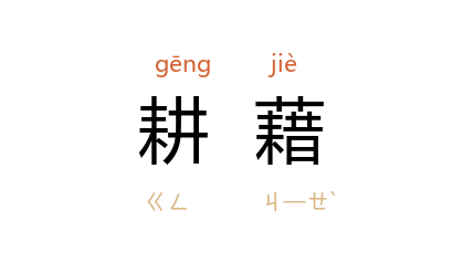 ⒈ 亦作“耕籍”。亦作“耕耤”。古时每年春耕前,天子、诸侯举行仪式,亲耕藉田,种植供祭祀用的谷物,并以示劝农。历代皆有此制,称为耕藉礼或籍田礼。据《礼记·月令》,其礼为天子三推,三公五推,卿、诸侯九推。至 清 末始废。