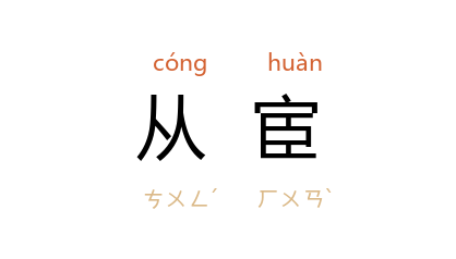 引南朝 梁 刘勰 《文心雕龙·时序》:“伟长 从宦於 青 土。”唐 武元衡 《兵行褒斜谷作》诗:“矢槖弧室岂领军,儋爵食禄由从宦。”宋 苏轼 《上神宗皇帝书》:“士大夫捐亲戚,弃坟墓,以从宦於四方者,宣力之餘,亦欲取乐,此人之至情也。”