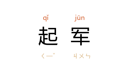 引三国 魏 刘廙 《上疏谏曹公亲征蜀》:“自殿下起军以来,三十餘年,敌无不破,彊无不服。”《水浒传》第五八回:“次早起军,前到 青州 城下。”《洪秀全演义》第三九回:“即与诸将起军,往 金陵 进发。”