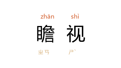 ⒈ 观瞻。指外观。《论语·尧曰》:“君子正其衣冠,尊其瞻视,俨然人望而畏之。”一说下视。见朱熹《论语集注》。