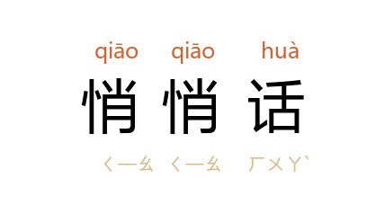 引折聚英 《太阳从这里升起》:“他不习惯跟婆姨说句悄悄话,一见我就脸红。”杜鹏程 《保卫延安》第二章:“嗬!政治委员的声音。天晓得,悄悄话让他给听见了!”