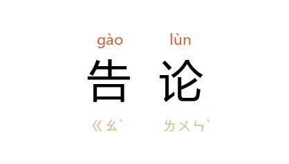 引《元典章·台纲二·察司体察等例》:“随处兇徒恶党,不务本业,以风闻公事,妄构饰词,告论官吏,恐吓钱物,沮坏官府。此等之人,并行究治。”明 《杀狗记·窑中拒奸》:“呈奸狡,刁唆人告论,君子貌,小人心。”