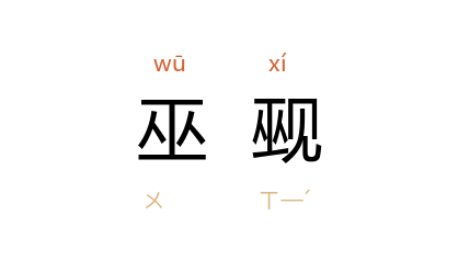 ⒈ 男女巫师的合称。男巫师称为「觋」,女巫师称为「巫」。