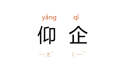 引唐 孟郊 《贫女词寄从叔先辈简》诗:“仰企碧霞仙,高控沧海云。”清 王先谦 《续古文辞类纂序》:“愚柔者仰企而不及,贤智者则务为浩侈,不肯自抑其才。”清 秋瑾 《赠蒋鹿珊先生言志》诗:“久闻吾 浙 有 蒋子,未见音容徒仰企。”