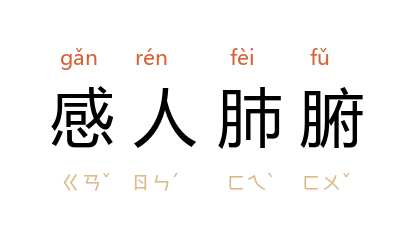 例如:「他舍己救人的英勇事迹,太感人肺腑了。」