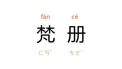 引宋 俞文豹 《唾玉集·无佛论》:“﹝ 张商英 ﹞尝见梵册整齐,叹吾儒之不若。”明 沉德符 《野获编·鬼怪·奇鬼》:“余问之学佛人云,此名拱尸鬼,然徧考梵册不得。”清 褚人穫 《坚瓠八集·十空曲》:“尤悔庵 先生《驻云飞·十空曲》:扰扰匆匆,遮莫晨鷄与暮鐘。梵策无须唪,公案何劳颂。”