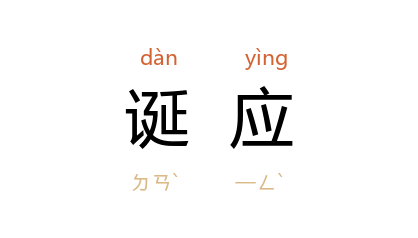 引汉 蔡邕 《郭有道碑文》:“先生诞应天衷,聦睿明哲,孝友温恭,仁篤慈惠。”晋 陆云 《西园第既成有司启》:“殿下诞应运期,首建大国。”南朝 齐 王俭 《高德宣烈乐·太祖高皇室》:“诞应休命,奄有八夤。”