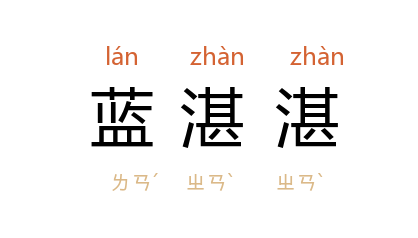 引周而复 《上海的早晨》第四部五九:“一轮红日高悬在蓝湛湛的天宇,白云快乐地一阵阵飘过。”郭澄清 《大刀记》第十七章:“蓝湛湛的天幕,好似刚刚冲洗过一样,那么清新,那么洁净。”
