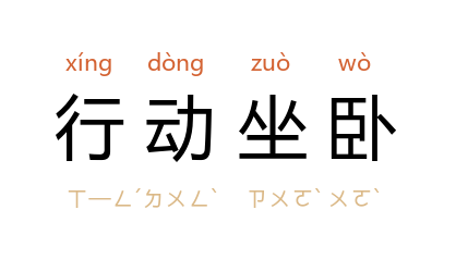 行动坐卧[ xíng dòng zuò wò ]