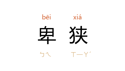 引《韩非子·难一》:“凡对问者,有因问小大缓急而对也,所问高大而对以卑狭,则明主弗受也。”唐 薛用弱 《集异记·李佐文》:“佐文 向明而至,至则野中迥室,卑狭颇甚。”明 宋濂 《莆田林氏重建先祠记》:“府君九世孙比部主事 衡 患祠之规制卑狭,不足以交神明,乃与从子 原 谋,共白於宗长 伯济 而改图之。”柔石 《二月》十八:“你底思想太卑狭了。”