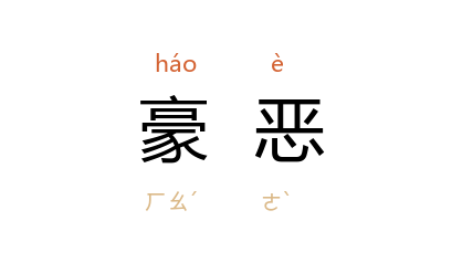 引《史记·酷吏列传》:“尹齐 木彊少文,豪恶吏伏匿而善吏不能为治,以故事多废,抵罪。”明 顾起元 《客座赘语·三宜恤》:“且富家自非豪恶閔不畏法者,岂必尽谋占而计取之。”清 黄六鸿 《福惠全书·莅任·总论》:“然后奸胥猾吏与地方豪恶之徒,戢然改行回心,而不敢恃亲而行术,轻犯而干法。”