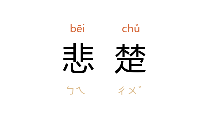 引《再生缘》第二一回:“荒凉景况堪悲楚,感动了久抱凌云美少年。”周立波 《暴风骤雨》第二部二四:“他想起了夭折的孩子,走道的媳妇,心里涌出了悲楚。”
