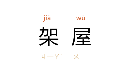 后遂以“架屋”为对专事模仿者的讥讽。 唐 黄滔 《薛推先辈》:“遂投鄙拙,上瀆精奇,佇聆架屋之讥,莫俟披沙之諭。”
