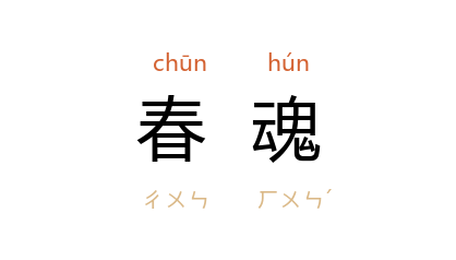 引清 龚自珍 《己亥杂诗》之三:“罡风力大簸春魂,虎豹沉沉卧九閽。”刘国钧 《月词》:“落尽棠梨浑不管,和云和雨瘞春魂。”