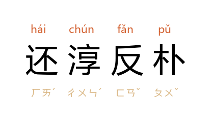 同“还淳反朴”。 《太平广记》卷一六五引 唐 高彦休 《高阙史·郑澣》:“僕尝病浇态讹俗,骄侈自奉,思得以还淳反朴,敦厚风俗。”