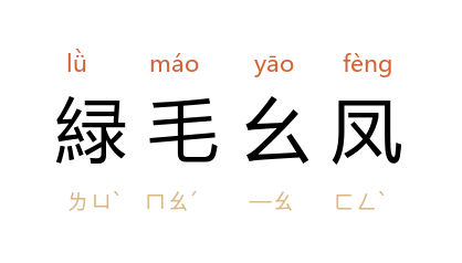 引宋 苏轼 《西江月·梅花》词:“海仙时遣探芳丛,倒挂緑毛幺凤。”亦作“緑毛么凤”。 《事物异名录·禽鸟·桐花鸟》引 明 镏绩 《霏雪录》:“桐花鸟即 东坡 词所谓倒挂緑毛么凤也。一名收香倒挂,又名探花使。”