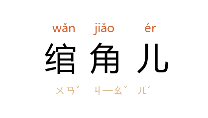 ⒈ 古时孩童束发为两髻,形状如角,故以“绾角儿”借指童年。