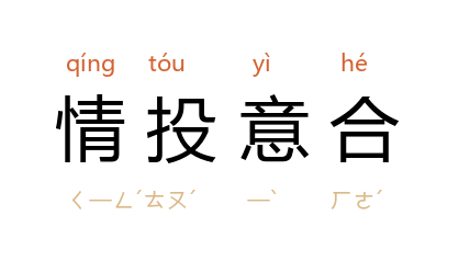 ⒈ 情感融洽,心意相通。也作「情孚意合」、「情投意洽」、「意合情投」。