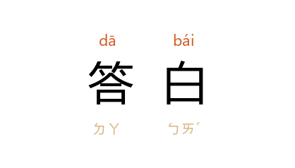 引周立波 《张满贞》:“我还要答白, 张满贞 对我使了一个眼色。”周立波 《腊妹子》:“腊妹子 嘴上没有答白,心里却着实欢喜。”沙汀 《酒后》:“保长一直没有答白,甚至一句话都没有听进去,只听到一片噪音。”